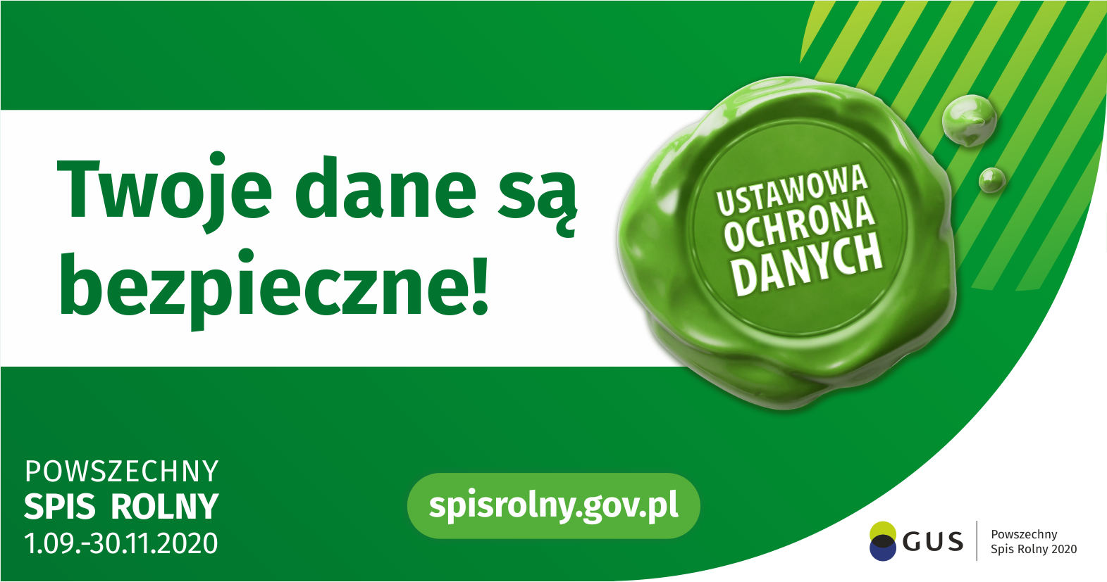 Powszechny Spis Rolny 2020, tak jak wszystkie prowadzone przez statystykę publiczną badania, jest realizowany z zachowaniem wysokich standardów bezpieczeństwa i w oparciu o nowoczesne techniki teleinformatyczne.