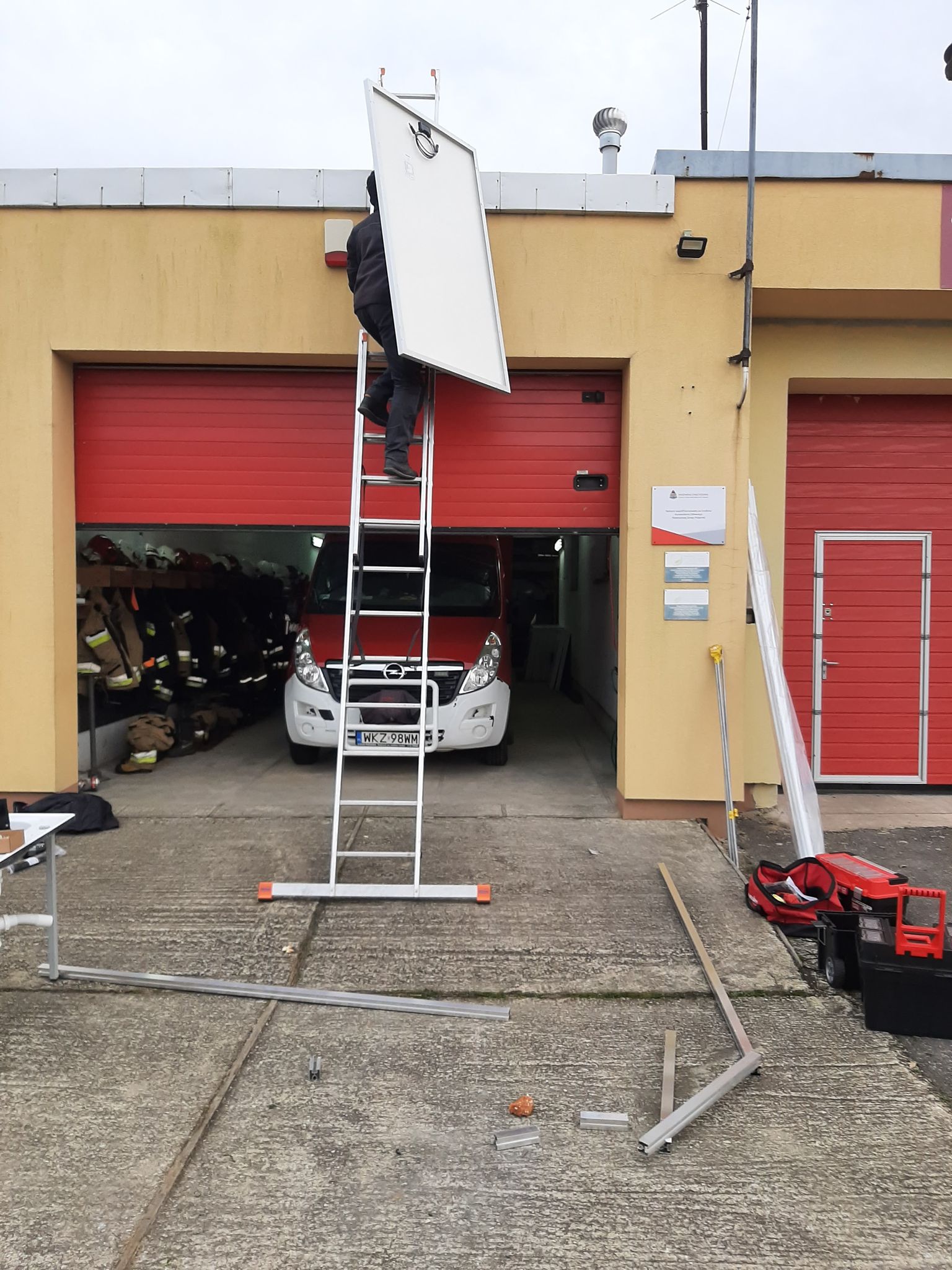 Instalacja o mocy 6.82Kwp została założona na dachu remizy. Prąd wytworzony w małej elektrowni przyczyni się do podniesienia komfortu cieplnego w budynku remizy jednocześnie obniżając rachunki za prąd które pokrywa Gmina.