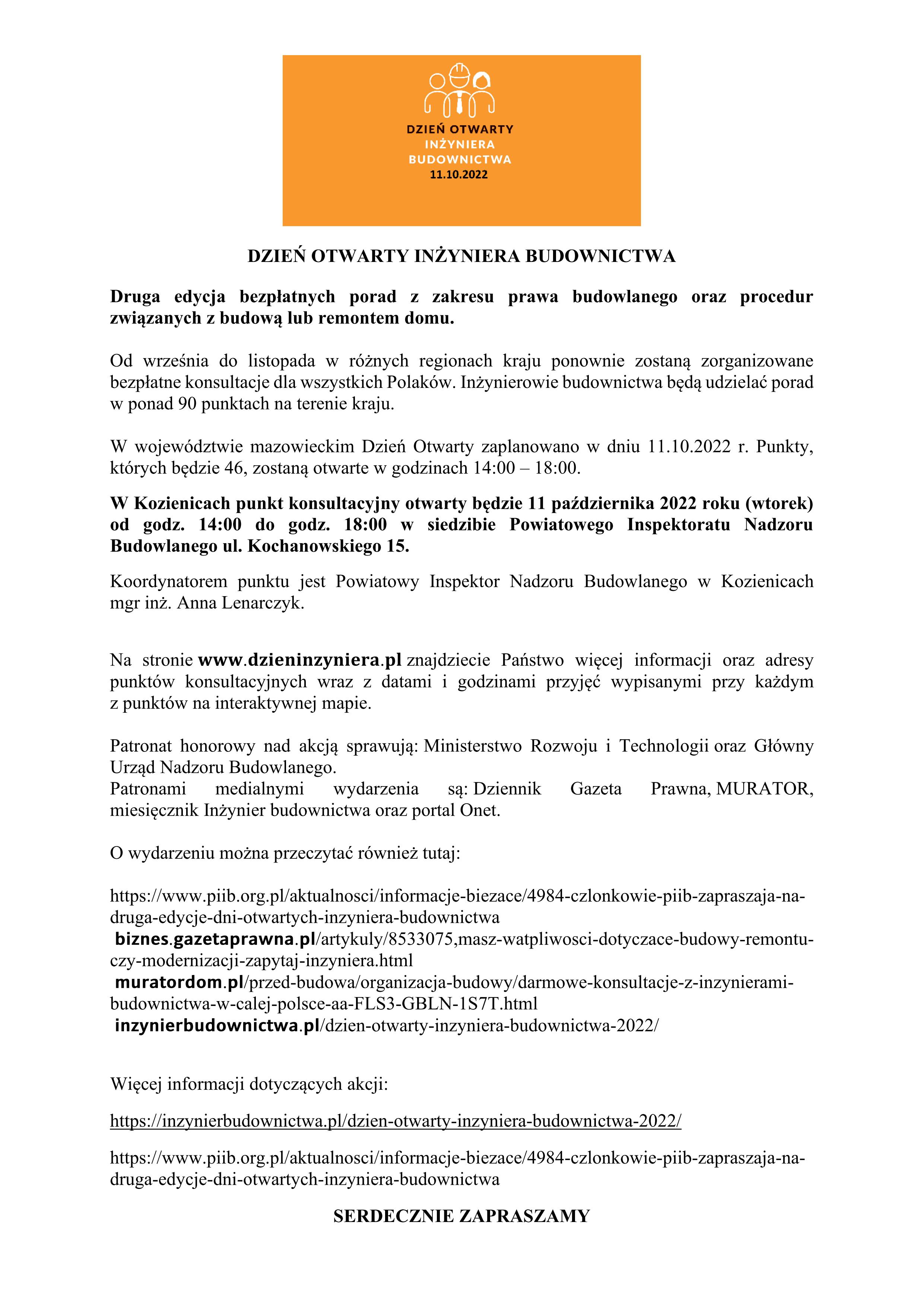 Dzień Otwarty Inżynierów Budownictwa 2022