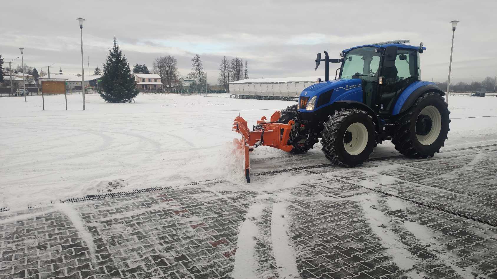 Do utrzymania stanu dróg i chodników gotowych jest łącznie 4 pojazdy w tym nowy ciągnik NEW HOLLAND w pełni uzbrojony w posypywarkę i pług śnieżny .